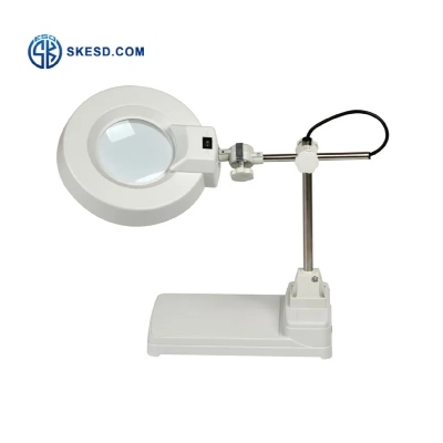 A 22 watt fluorescent ring bulb surrounds the 3/5/8 diopter magnifying lens to flood the inspection area under the magnifier with plenty of light for close up inspection work. The spring balanced arm provides just the right amount of mobility and resistance to hold the magnifying lamp where it’s most needed.