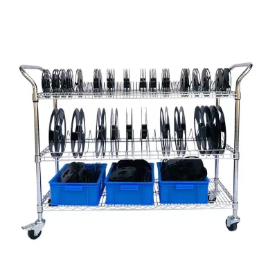 ESD Storage Trolley is also called ESD turnover cart, transfer cart, storage truck, etc. It’s widely used in SMT processing, machinery, automotive, lighting industry, electronics and other production enterprises. It’s easy to store, convenient for turnover, neatly stacked, and easy to manage the PCBs.The turn made of anti-static materials and stable stainless steel structure, equipped with 4pcs 360degree rotation wheels, very convenient to transportation, transfer, storage, it’s parts of smart materials management in the SMT production factories.